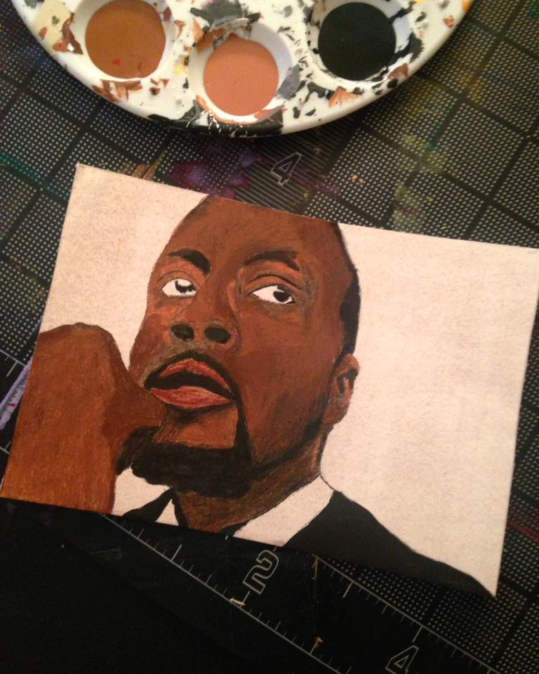 4x6 inch mixed media painting of music artist Wyclef Jean.