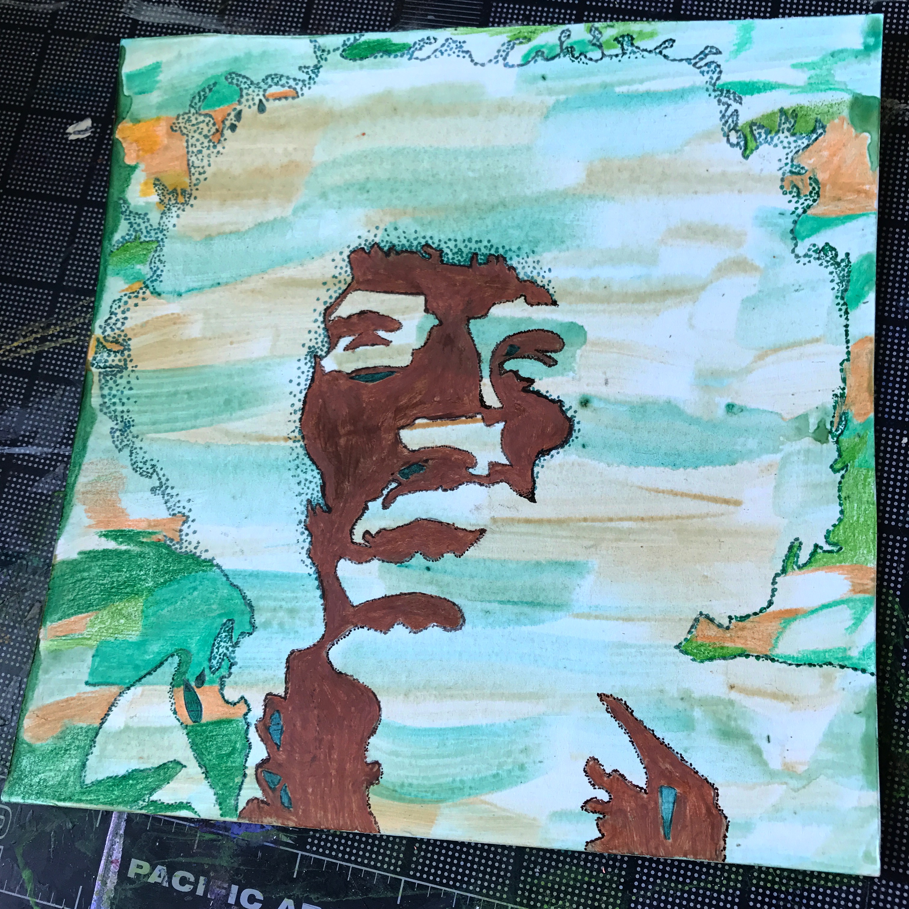 8x8 inch mixed media painting of music legend Jimi Hendrix.