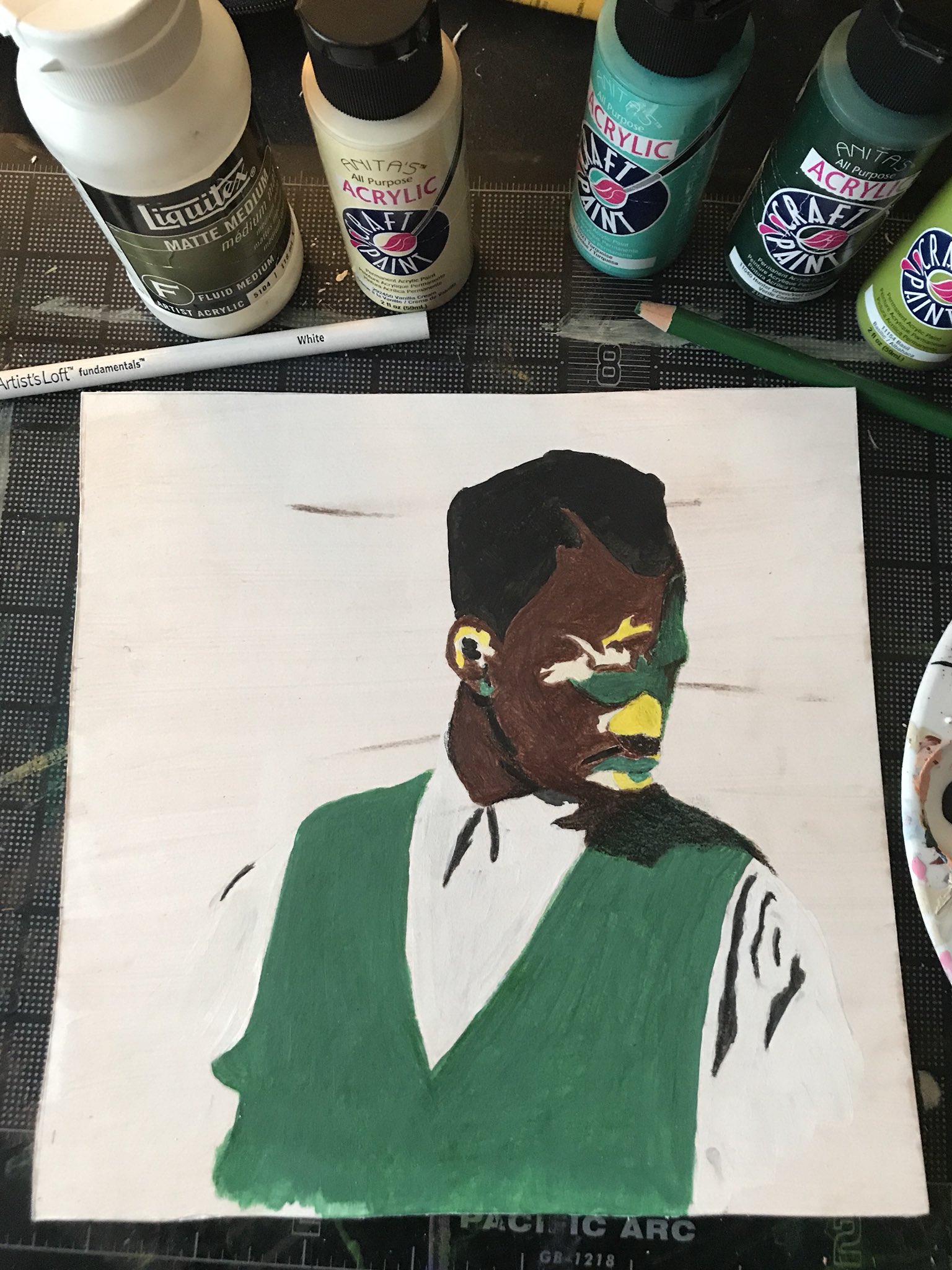 8x8 inch mixed media illustration of gospel music artist Kirk Franklin.