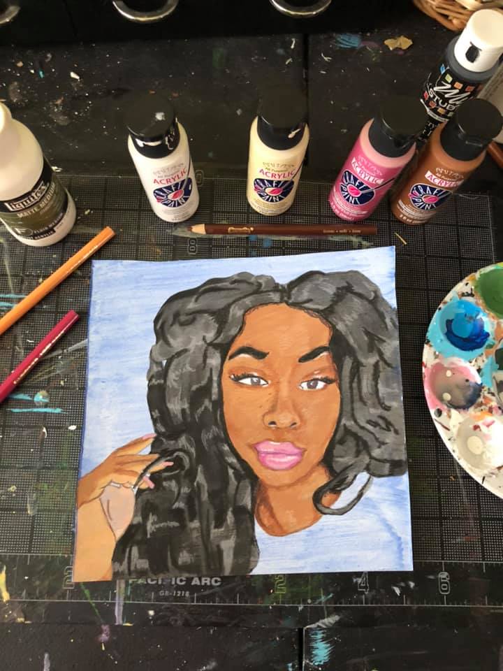 Music artist SZA 8x8 inch mixed media illustration.