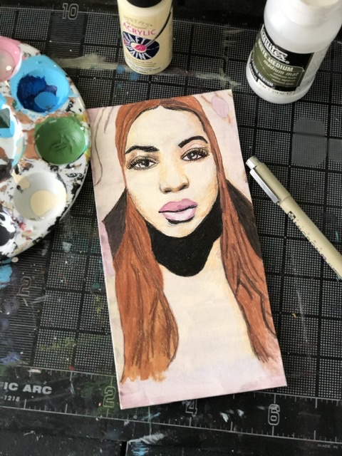 4x6 inch mixed media illustration of music artist and entrepreneur B. Knowles.
