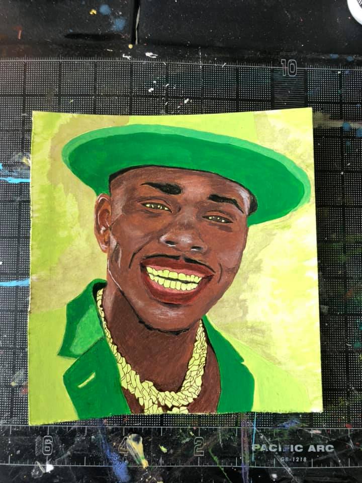 8x8 inch mixed media illustration of rapper and music artist Da Baby.
