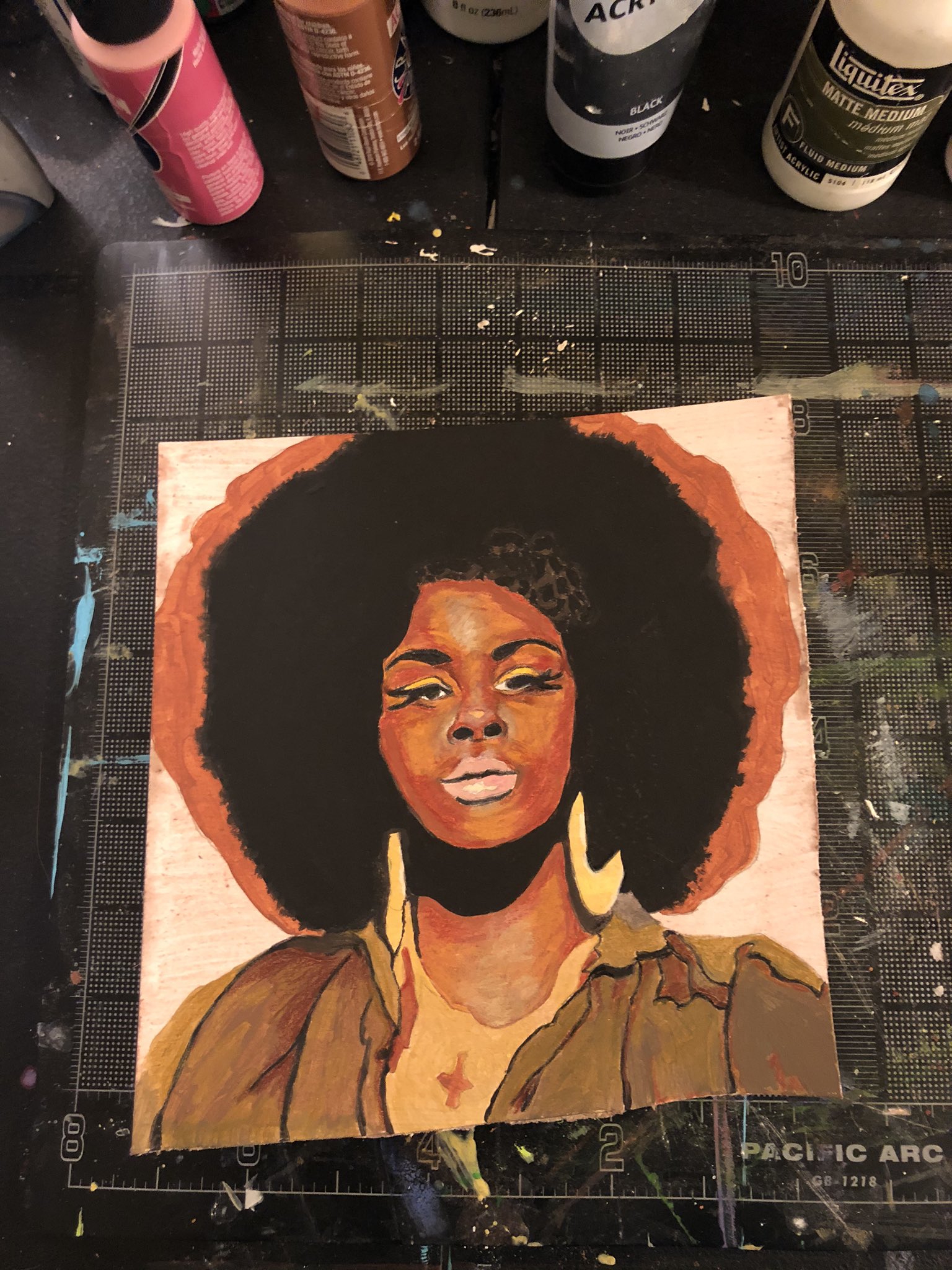 8x8 inch mixed media illustration of Philadelphia music artist and actress Jill Scott.