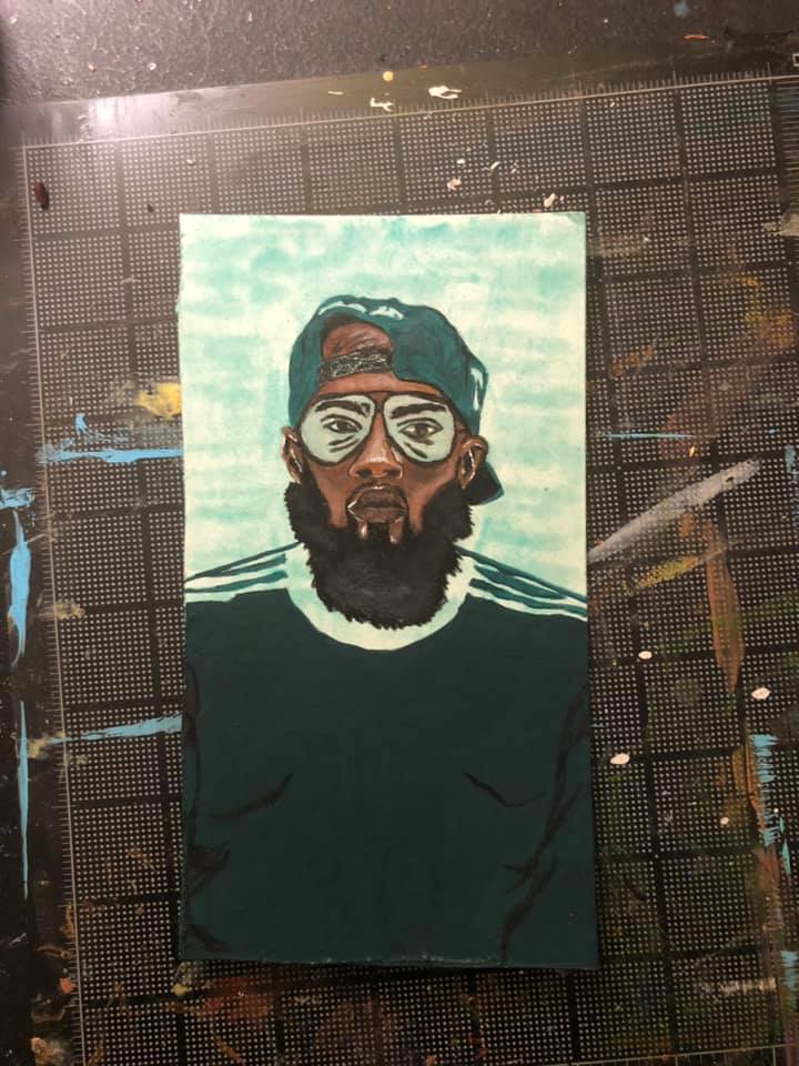 4x6 inch mixed media illustration of Philadelphia rapper and music artist Freeway.